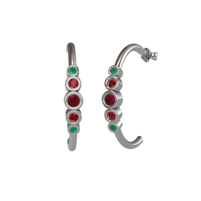 Kök yakut, garnet ve kök zümrüt 18 ayar beyaz altın küpe