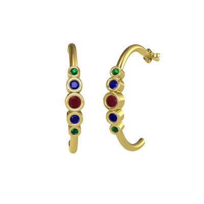 Kök yakut, lab safir ve yeşil kuvars 925 ayar altın kaplama gümüş küpe