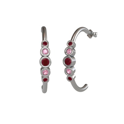 Kök yakut ve pembe kuvars 925 ayar gümüş küpe