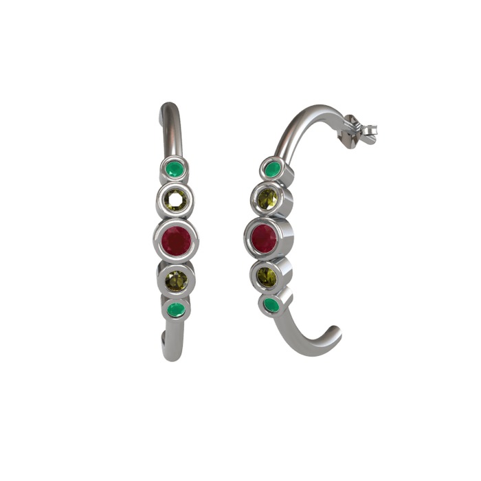 Kök yakut, peridot ve kök zümrüt 18 ayar beyaz altın küpe