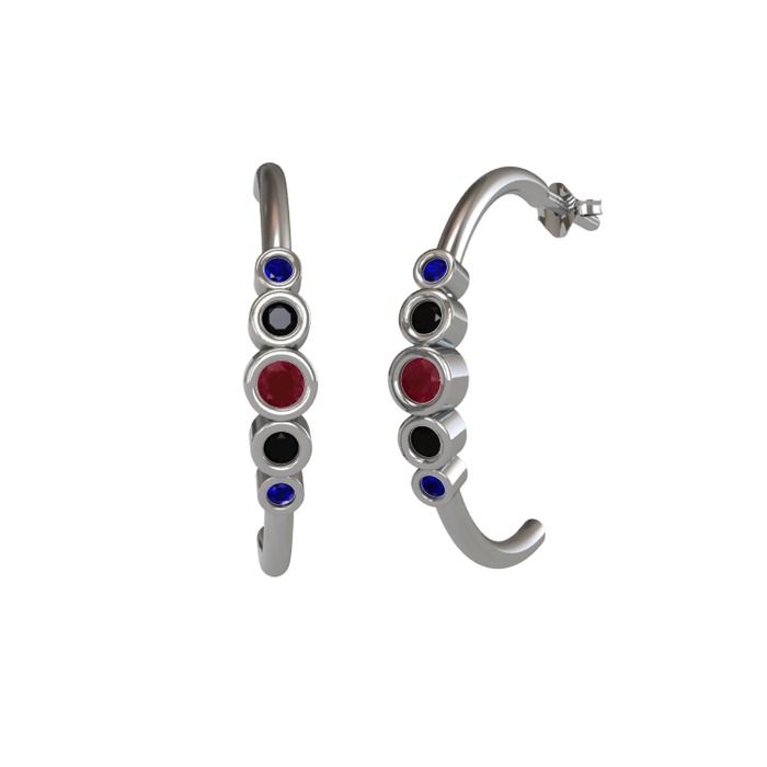 Kök yakut, siyah zirkon ve lab safir 8 ayar beyaz altın küpe