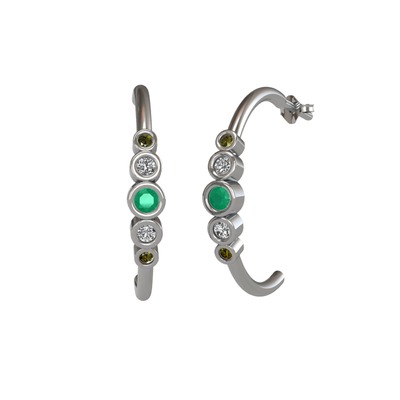 Kök zümrüt, beyaz zirkon ve peridot 14 ayar beyaz altın küpe