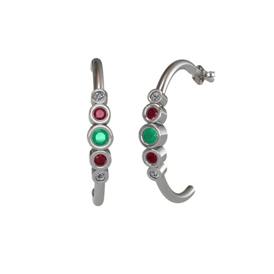 Kök zümrüt, kök yakut ve pırlanta 8 ayar beyaz altın küpe (0.08 karat)