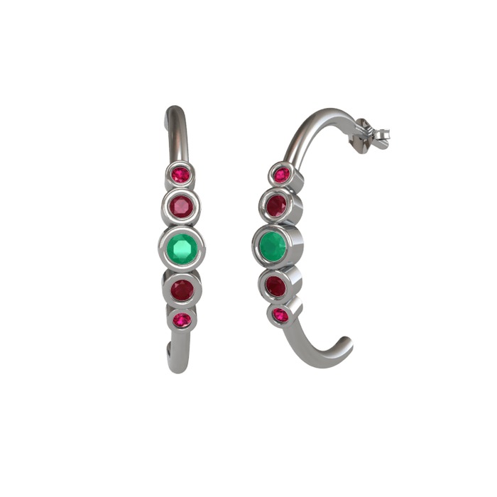 Kök zümrüt, kök yakut ve rodolit garnet 925 ayar gümüş küpe