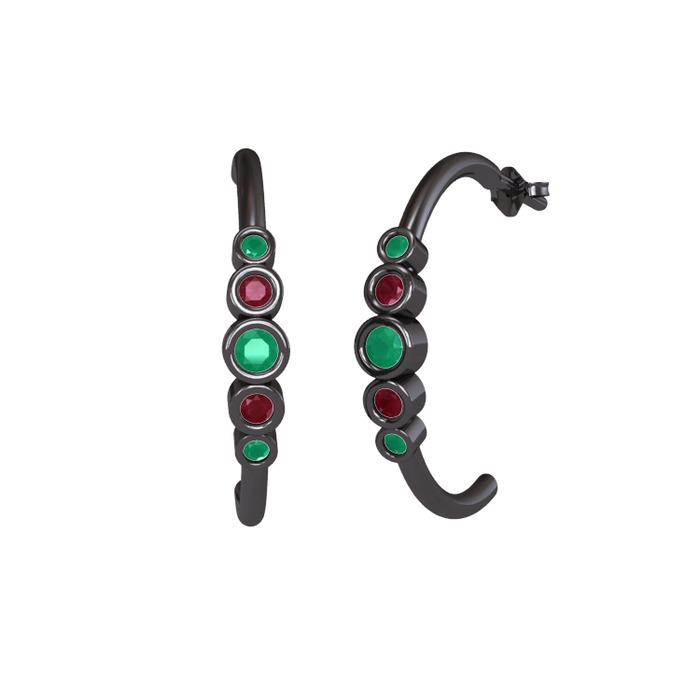 Kök zümrüt ve kök yakut 925 ayar siyah rodyum kaplama gümüş küpe