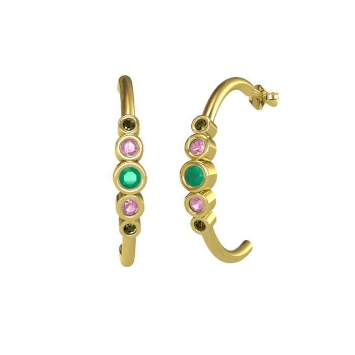 Kök zümrüt, pembe kuvars ve peridot 925 ayar altın kaplama gümüş küpe