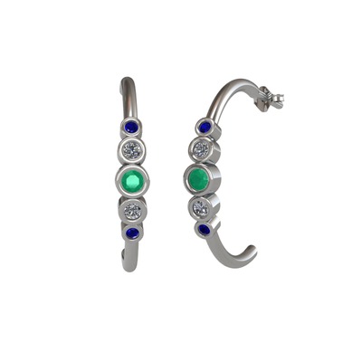 Kök zümrüt, pırlanta ve lab safir 18 ayar beyaz altın küpe (0.08 karat)