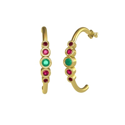 Kök zümrüt, rodolit garnet ve kök yakut 8 ayar altın küpe
