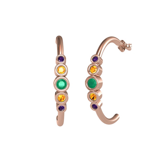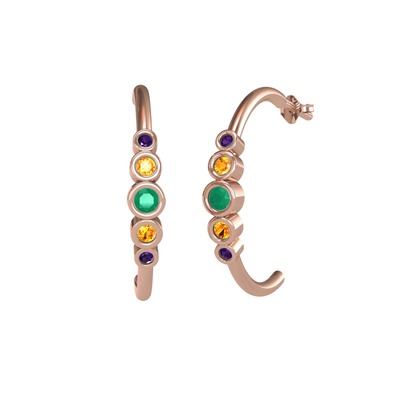 Kök zümrüt, sitrin ve ametist 18 ayar rose altın küpe