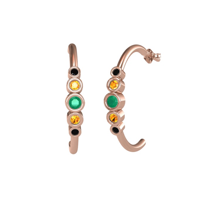Kök zümrüt, sitrin ve siyah zirkon 925 ayar rose altın kaplama gümüş küpe