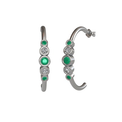 Kök zümrüt ve swarovski 18 ayar beyaz altın küpe