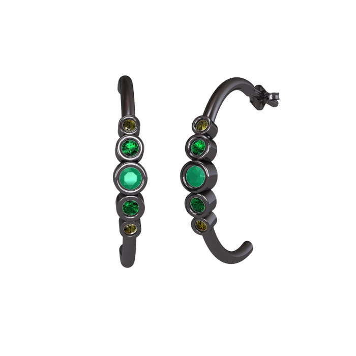 Kök zümrüt, yeşil kuvars ve peridot 925 ayar siyah rodyum kaplama gümüş küpe