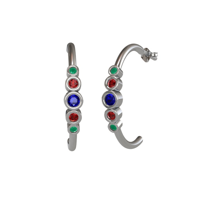 Lab safir, garnet ve kök zümrüt 14 ayar beyaz altın küpe
