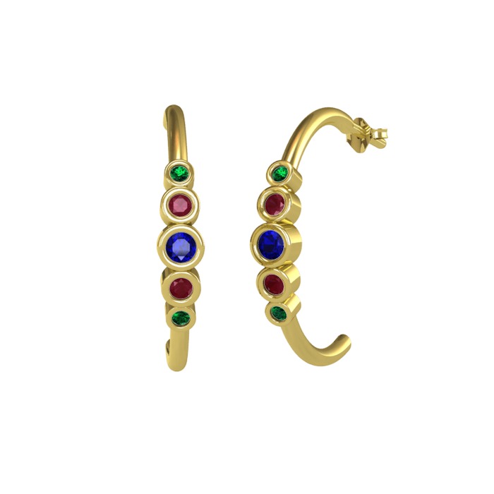 Lab safir, kök yakut ve yeşil kuvars 925 ayar altın kaplama gümüş küpe