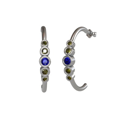 Lab safir ve peridot 14 ayar beyaz altın küpe