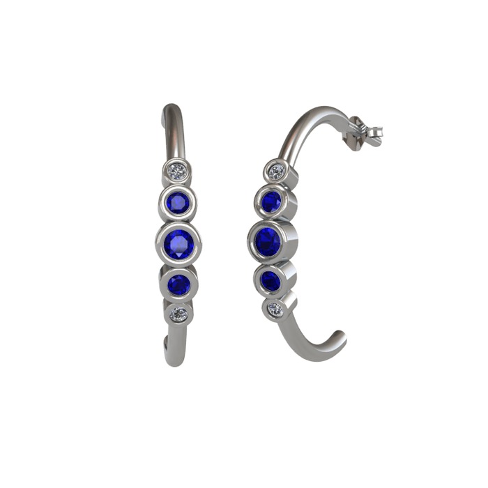 Lab safir ve pırlanta 14 ayar beyaz altın küpe (0.08 karat)