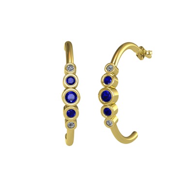 Lab safir ve pırlanta 18 ayar altın küpe (0.08 karat)