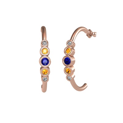 Lab safir, sitrin ve beyaz zirkon 14 ayar rose altın küpe