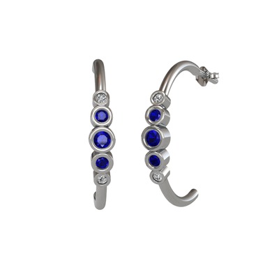 Lab safir ve swarovski 14 ayar beyaz altın küpe