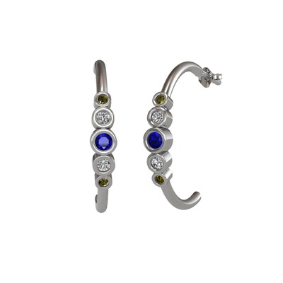 Lab safir, swarovski ve peridot 14 ayar beyaz altın küpe