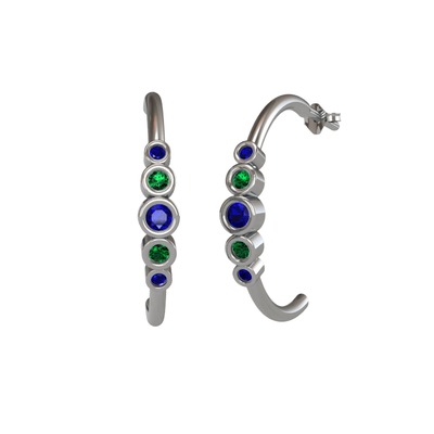 Lab safir ve yeşil kuvars 18 ayar beyaz altın küpe