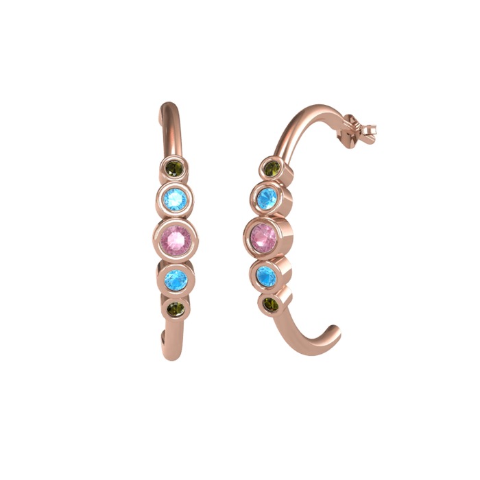 Pembe kuvars, akuamarin ve peridot 8 ayar rose altın küpe