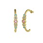 Pembe kuvars, beyaz zirkon ve akuamarin 18 ayar altın küpe