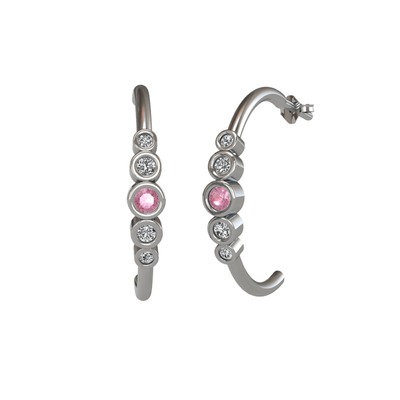 Pembe kuvars, beyaz zirkon ve swarovski 8 ayar beyaz altın küpe