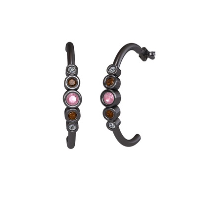 Pembe kuvars, dumanlı kuvars ve pırlanta 925 ayar siyah rodyum kaplama gümüş küpe (0.08 karat)