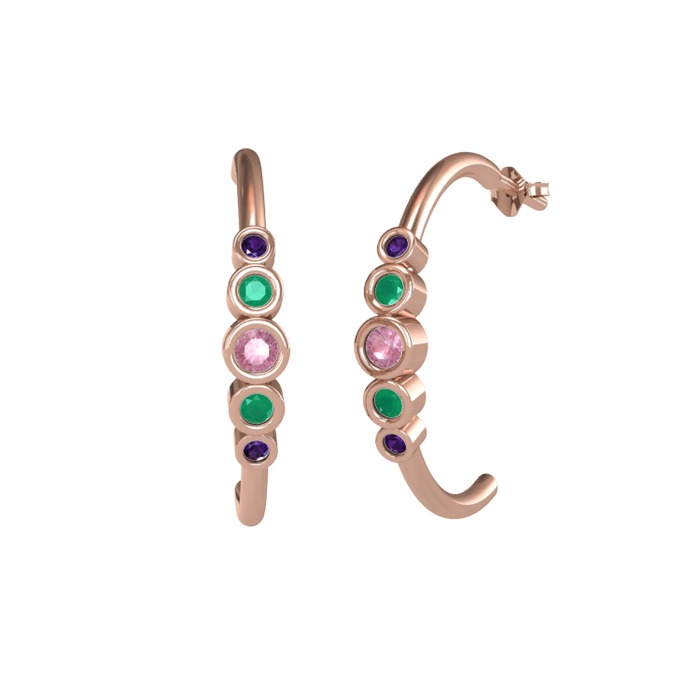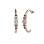 Pembe kuvars, kök zümrüt ve ametist 18 ayar rose altın küpe