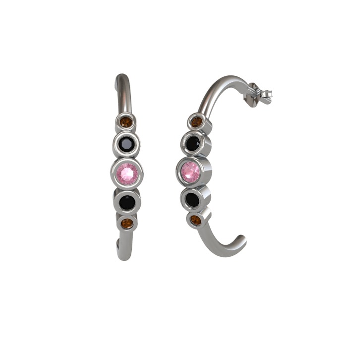 Pembe kuvars, siyah zirkon ve dumanlı kuvars 14 ayar beyaz altın küpe