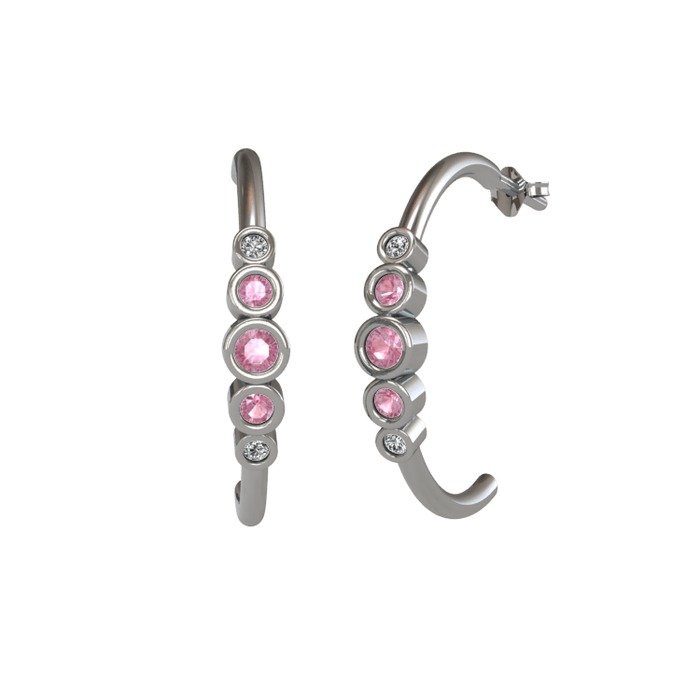 Pembe kuvars ve swarovski 14 ayar beyaz altın küpe