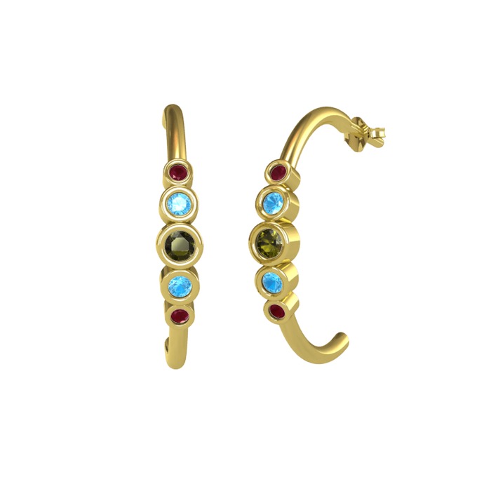 Peridot, akuamarin ve kök yakut 8 ayar altın küpe