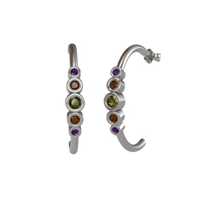 Peridot, dumanlı kuvars ve ametist 14 ayar beyaz altın küpe