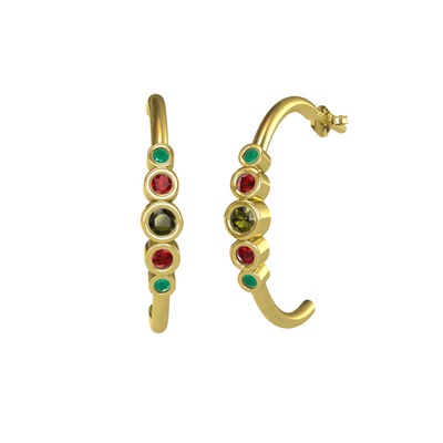 Peridot, garnet ve kök zümrüt 8 ayar altın küpe