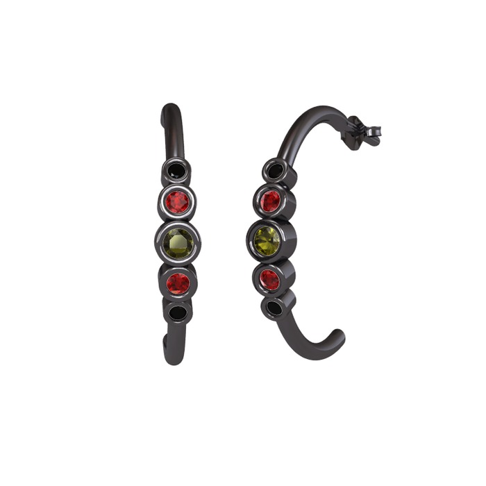 Peridot, garnet ve siyah zirkon 925 ayar siyah rodyum kaplama gümüş küpe