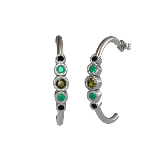 Peridot, kök zümrüt ve siyah zirkon 8 ayar beyaz altın küpe