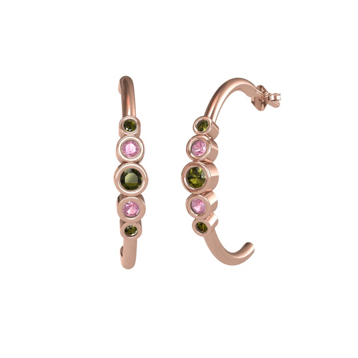 Peridot ve pembe kuvars 18 ayar rose altın küpe
