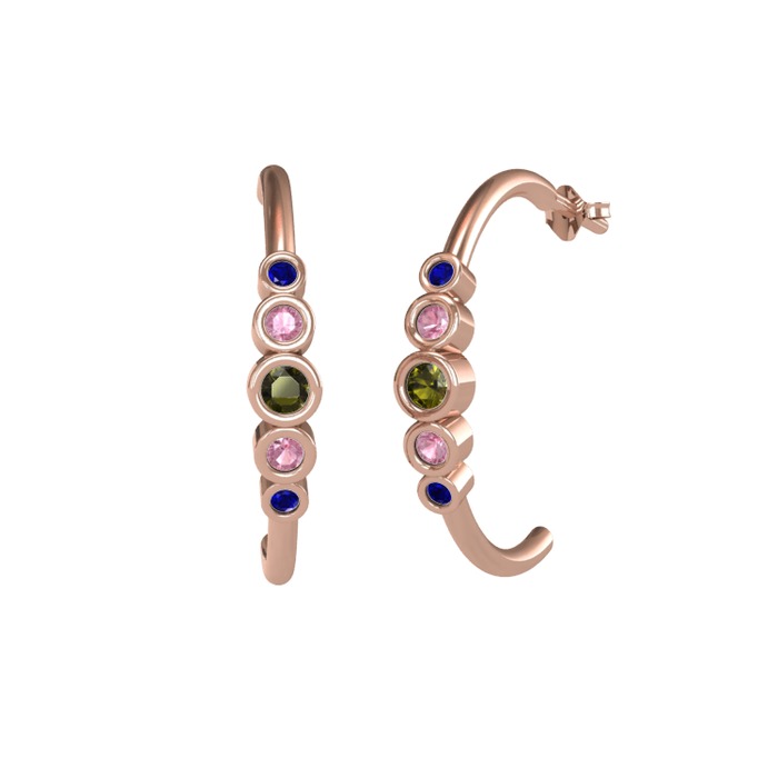 Peridot, pembe kuvars ve lab safir 18 ayar rose altın küpe