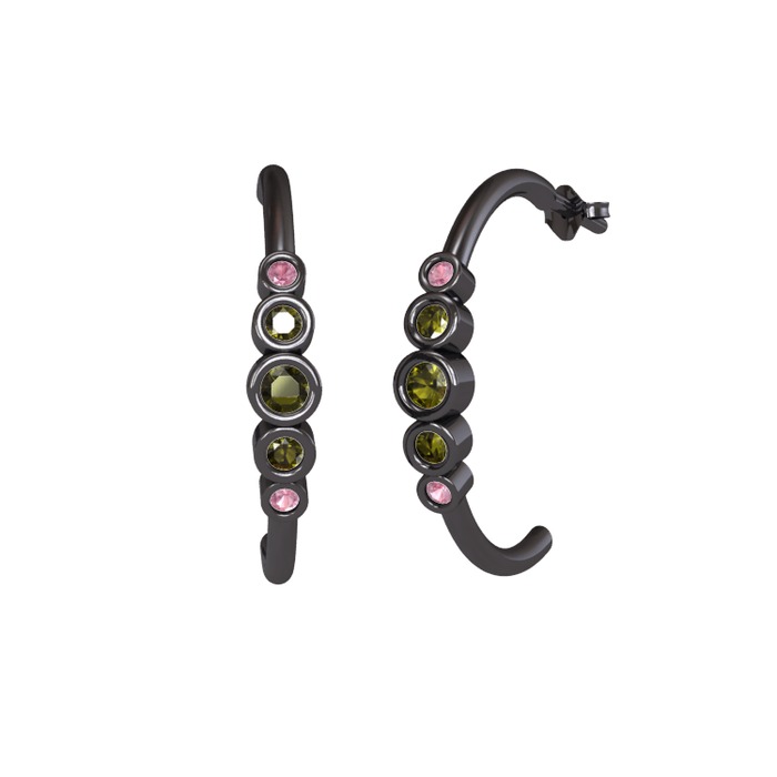 Peridot ve pembe kuvars 925 ayar siyah rodyum kaplama gümüş küpe