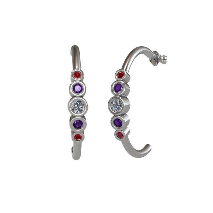 Pırlanta, ametist ve garnet 14 ayar beyaz altın küpe (0.12 karat)