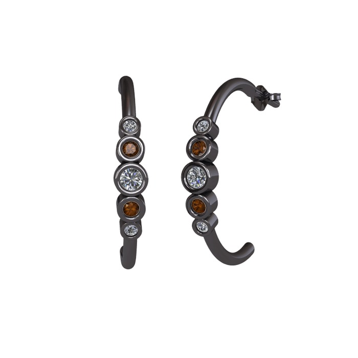 Pırlanta ve dumanlı kuvars 925 ayar siyah rodyum kaplama gümüş küpe (0.2 karat)