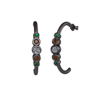 Pırlanta, dumanlı kuvars ve yeşil kuvars 925 ayar siyah rodyum kaplama gümüş küpe (0.12 karat)