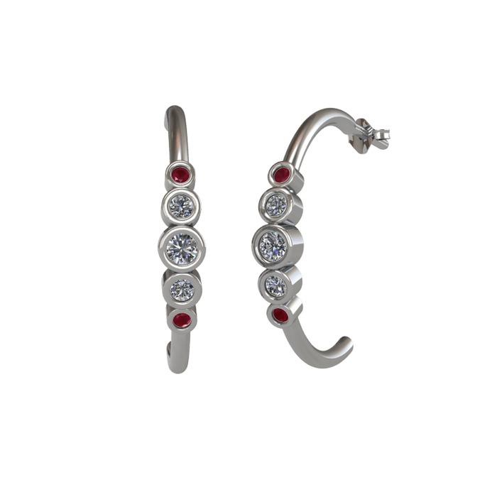 Pırlanta ve kök yakut 8 ayar beyaz altın küpe (0.2 karat)