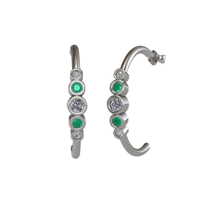 Pırlanta, kök zümrüt ve swarovski 14 ayar beyaz altın küpe (0.12 karat)