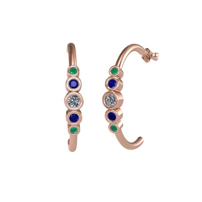 Pırlanta, lab safir ve kök zümrüt 8 ayar rose altın küpe (0.12 karat)