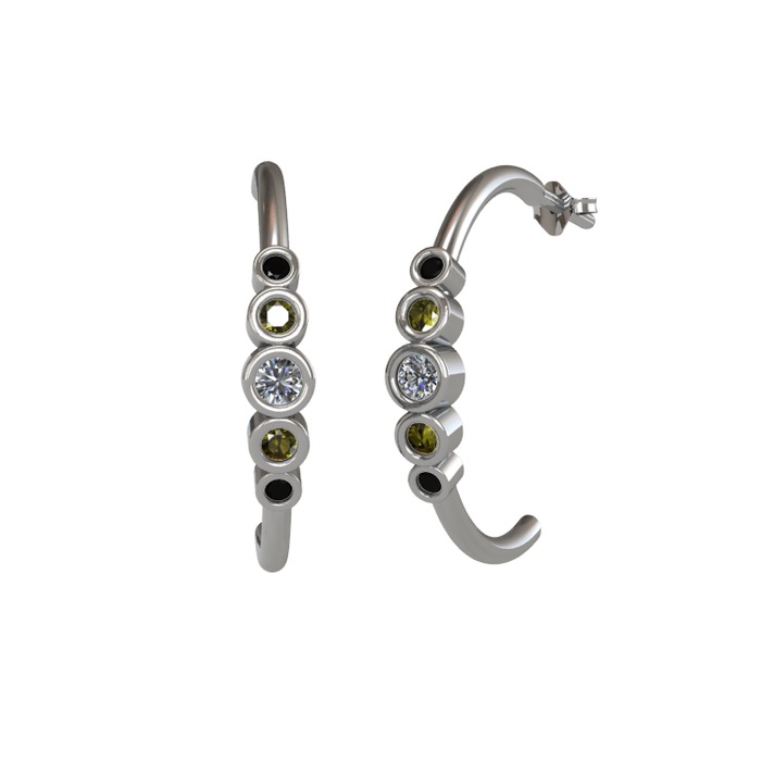 Pırlanta, peridot ve siyah zirkon 14 ayar beyaz altın küpe (0.12 karat)