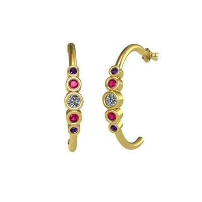 Pırlanta, rodolit garnet ve ametist 18 ayar altın küpe (0.12 karat)