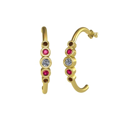 Pırlanta, rodolit garnet ve dumanlı kuvars 8 ayar altın küpe (0.12 karat)