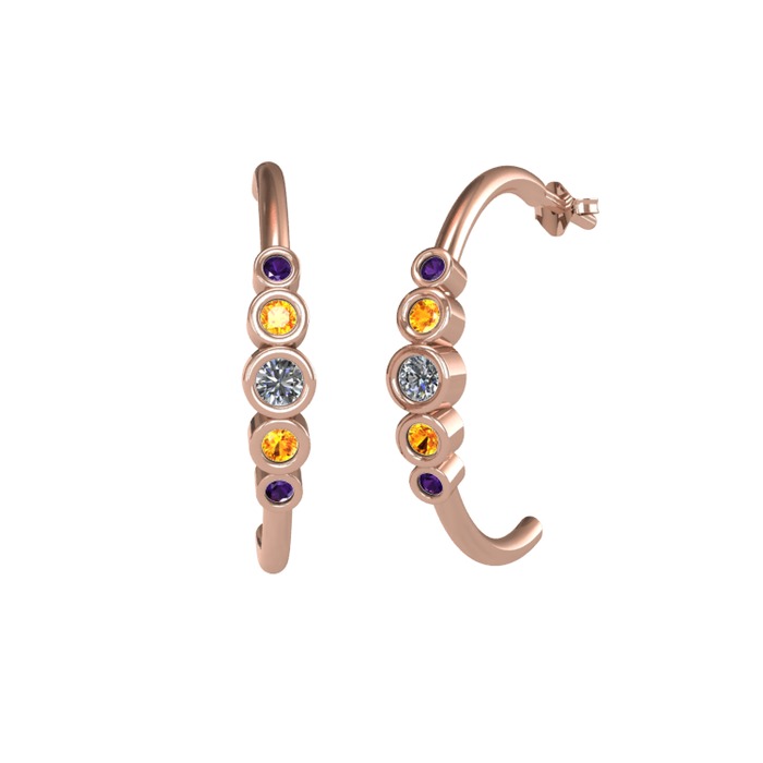 Pırlanta, sitrin ve ametist 18 ayar rose altın küpe (0.12 karat)
